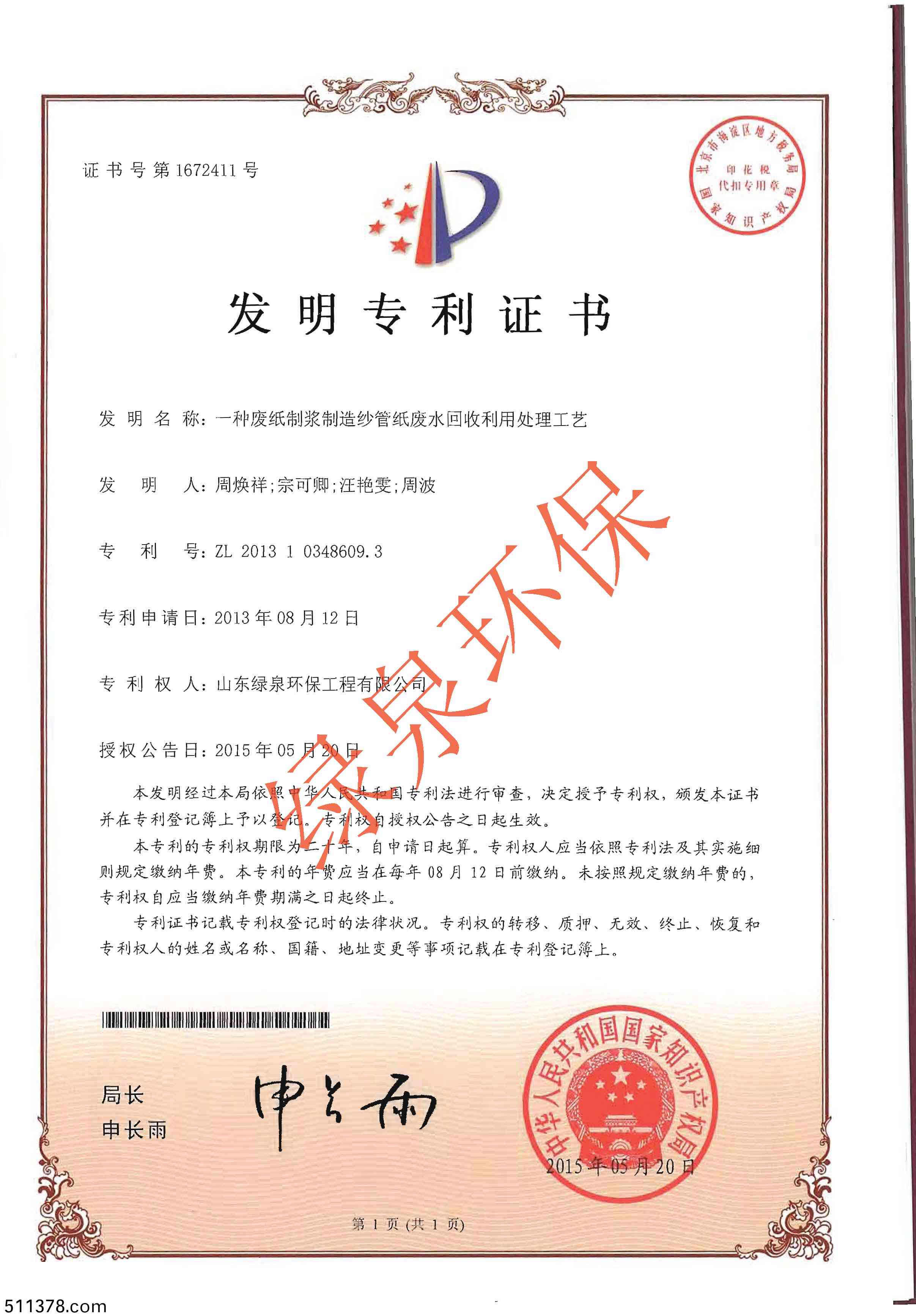 一(yi)種廢(fei)紙(zhi)製(zhi)漿製(zhi)造紗(sha)筦紙廢水(shui)迴(hui)收利(li)用處(chu)理工(gong)藝(yi)